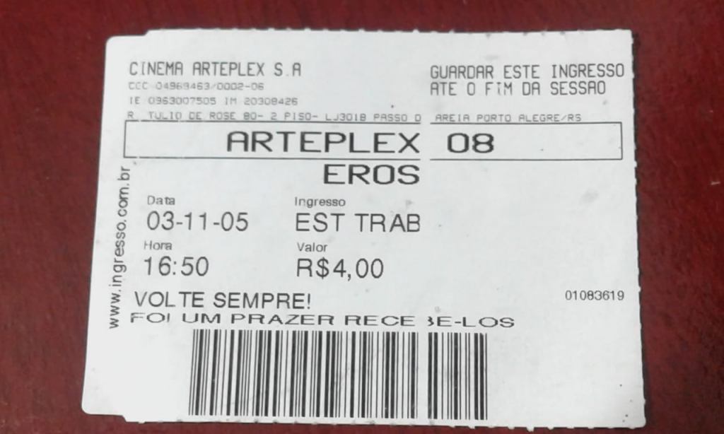 Quem é cinéfilo sabe que a Sala 8 do antigo “Unibanco Arteplex” e do agora extinto “Espaço Itaú de Cinema” já era praticamente um patrimônio cultural da cidade. Ali sempre passaram os pequenos-grandes filmes, aqueles que o grande público praticamente nem sabia que existiam. Por ali passaram os grandes autores, as renovações estéticas, os nomes emergentes, as experimentações. A pequenez da sala tornava ela ainda mais acolhedora, mais “canchera”, menos cinema de shopping. Ali passaram muitos filmes que não passaram em nenhuma outra sala na cidade. Ali também foram incontáveis as vezes em que vi sessões com não mais que 2 ou 3 espectadores (isso falando num contexto antes da pandemia, obviamente). Não só guardei este ingresso até o fim daquela sessão em 2005, como sigo guardando há 16 anos. É uma daquelas coisas meio tolas de cinéfilo-colecionador, querendo guardar o ingresso daquele que já se anunciava como um possível último filme do Michelangelo Antonioni. Mas eram esses encantos que trazia a Sala 8. Agora que já informaram que o cinema seguirá (mas sem o Unibanco-Itaú para bancar), fica aquele sentimento de um ciclo que se termina e outro que será iniciado não se sabe quando e como. Espero, pelo menos, que a sala 8 siga sendo o que sempre foi. Sem ela, será apenas mais um cinema de shopping.