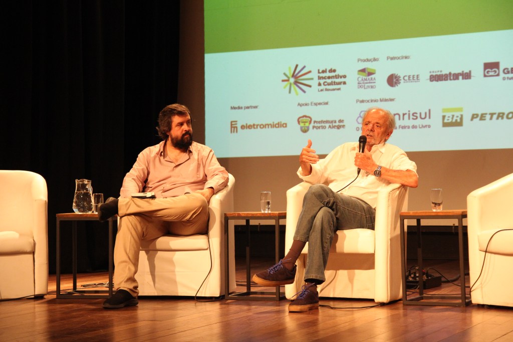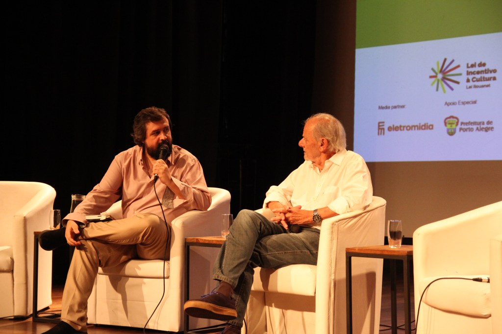 Projeção do filme “Mario Arregui & Sergio Faraco – amizade sem fronteiras” no evento União Literário, organizado pelo Gremio Náutico União (Porto Alegre), no dia 24.1125. Debate sobre o filme com Sergio Faraco, Paulo Flávio Ledur e Rafael Valles.
